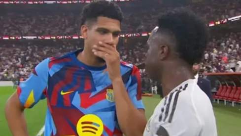 El descanso del Clásico de la final de la Supercopa de España ha dejado una de las imágenes más curiosas de los últimos meses. Vinicius Júnior, delantero del Real Madrid, se ha ido directo a por Ronald Araújo, uno de los capitanes del Fútbol Club Barcelona, para hablar con él.
