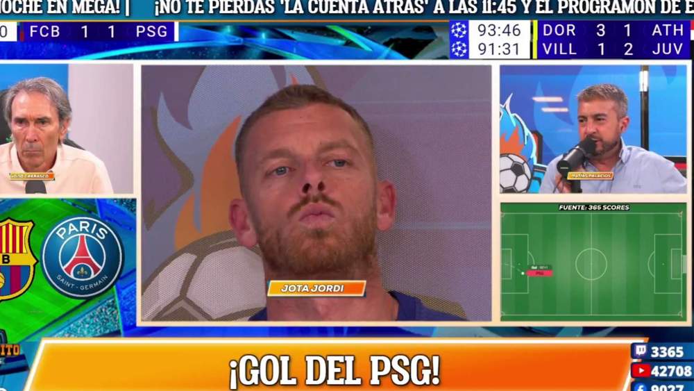 Uno de los personajes que claramente siempre tiene el foco mediático puesto directamente sobre él es el tertuliano barcelonista del Chiringuito de Jugones, Jota Jordi. En este caso fue partícipe de una de las reacciones más cómicas para todos los que esperaban ver perder al Fútbol Club Barcelona contra el PSG. En esto se le ve devastado con el segundo gol por parte del conjunto parisino, en lo que fue un auténtico repaso de los franceses.